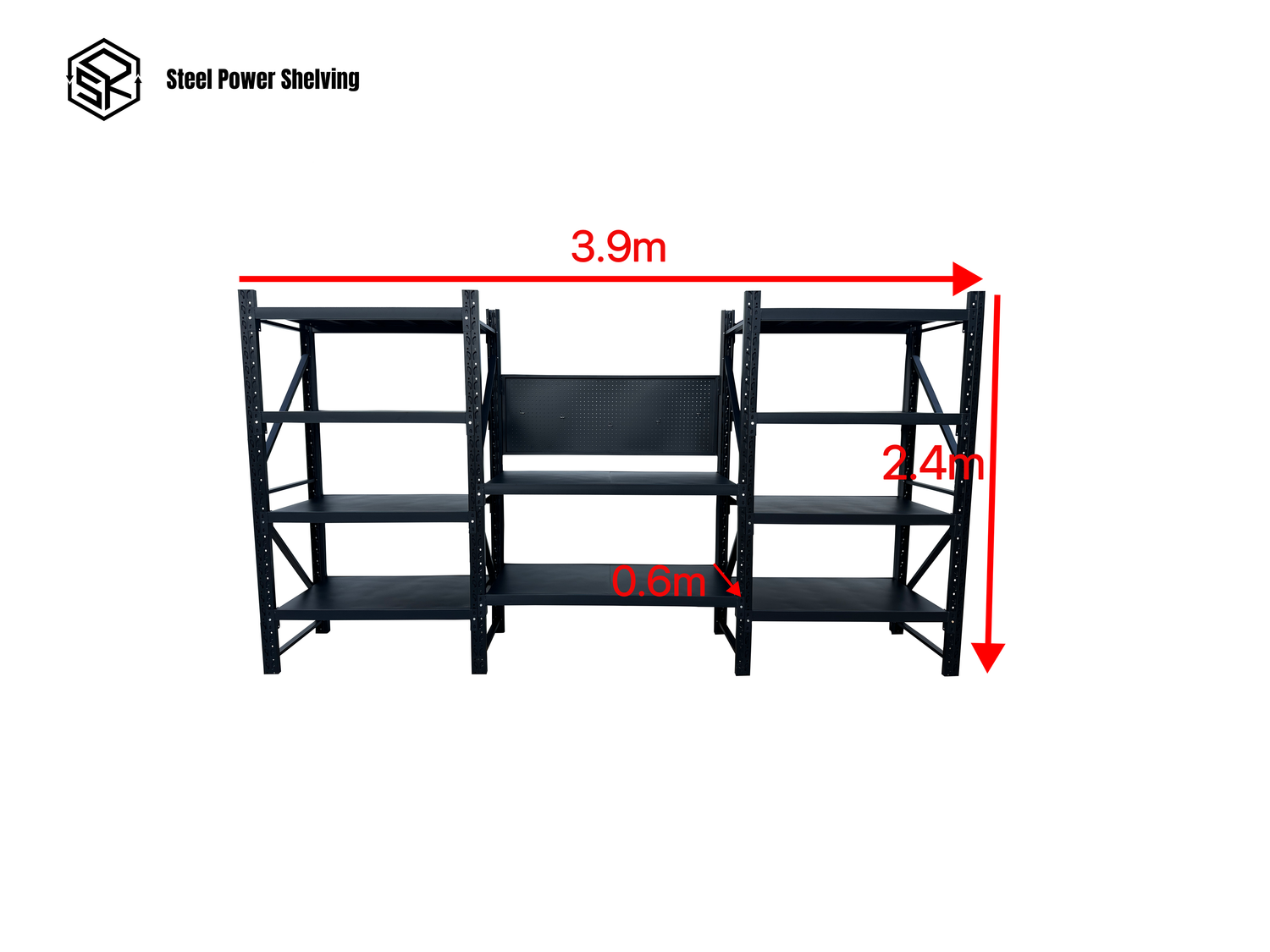 Workstation with pegboard - workbench 2.4m(H) x 3.9m(L) x 0.6m (D) 3000kg