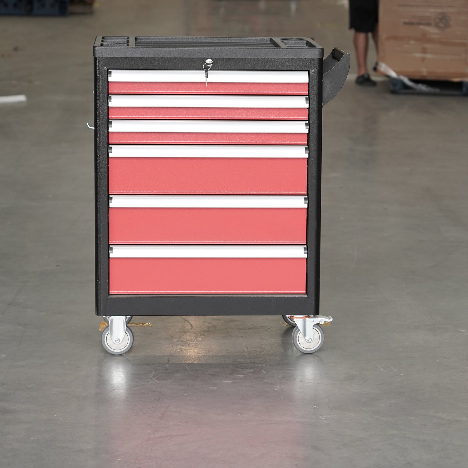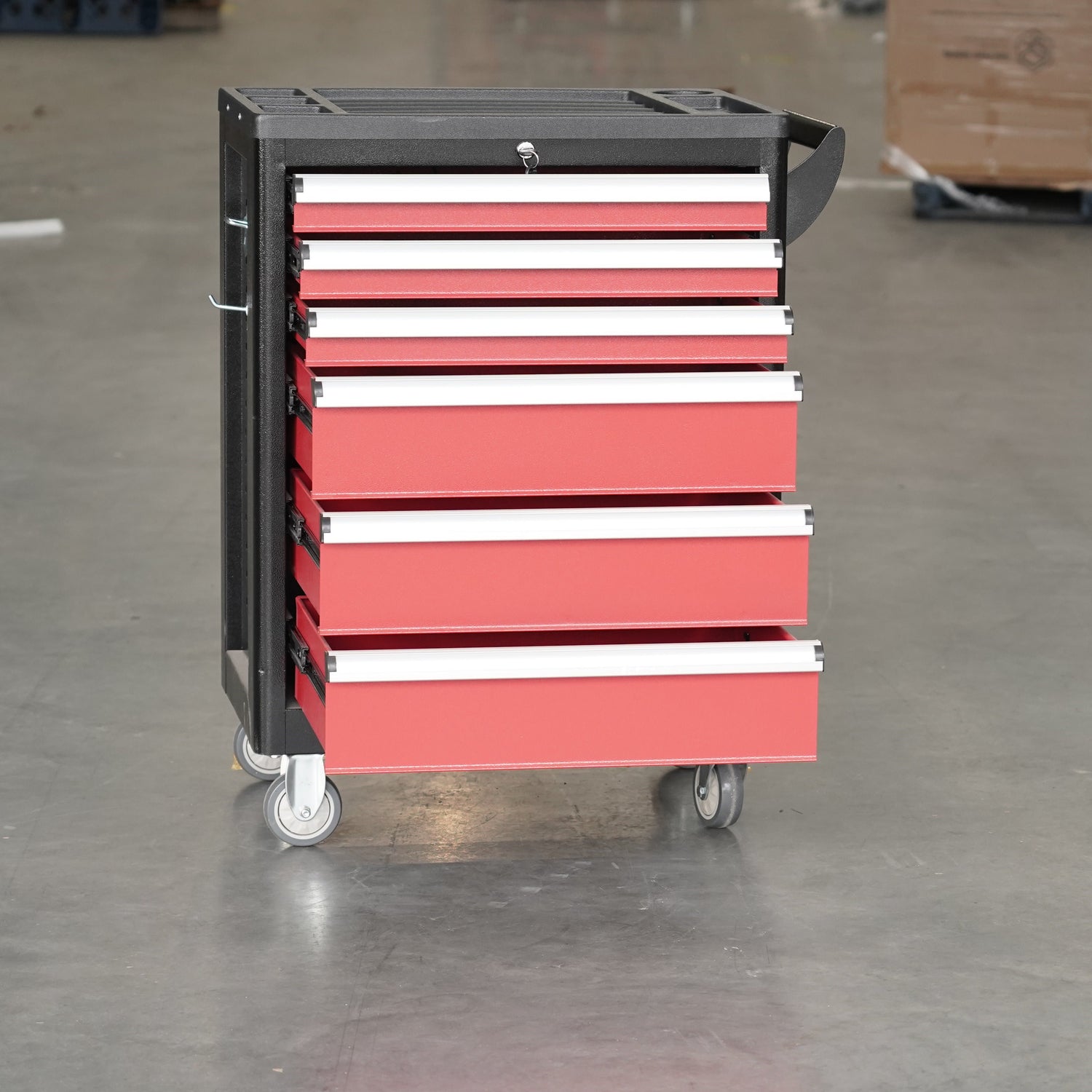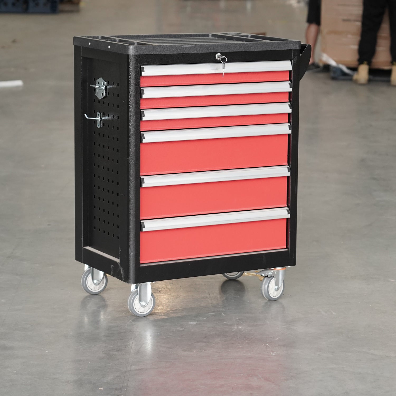 Heavy-Duty 6-Drawer Tool Trolley with Side Pegboard & Lockable Wheels, Red Steel Rolling Tool Storage Cart for Workshops and Garages is backordered and will ship as soon as it is back in stock.
