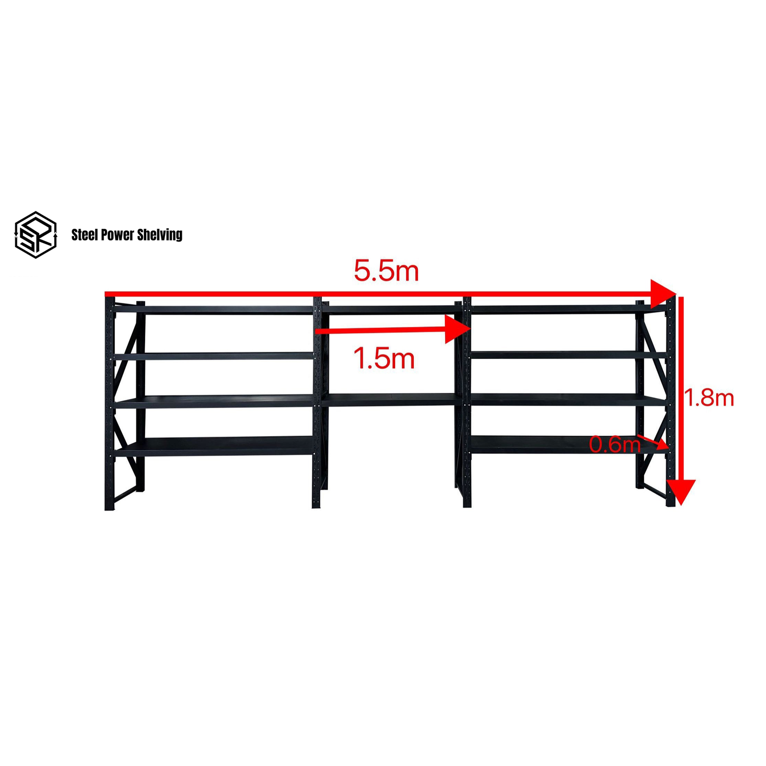 Shelf 1.8m(H)x5.5m(L)x0.6m(D)3000kg Shelving+Workbench is backordered and will ship as soon as it is back in stock.