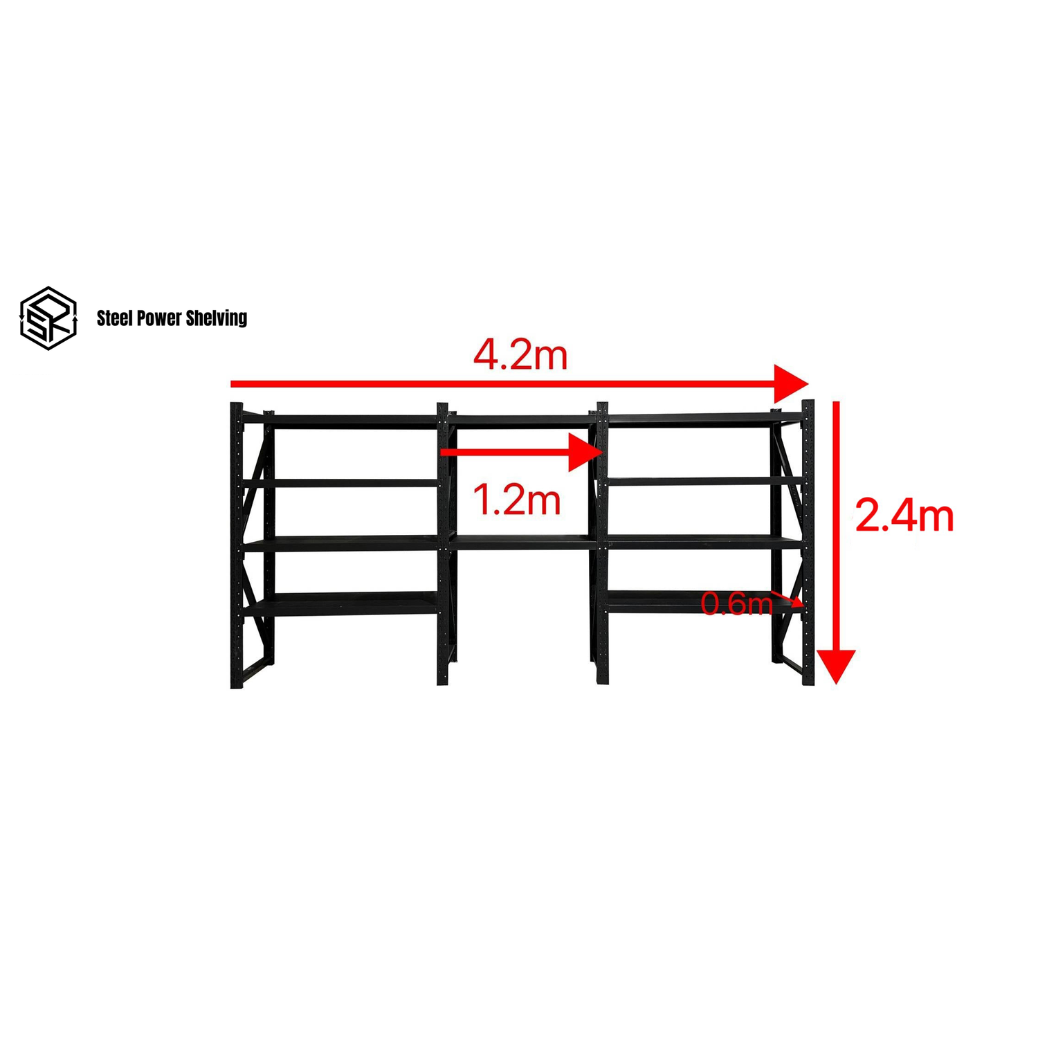 2.4m(H) x 4.2m(L) x 0.6m (D) 3000kg Shelving+Workbench