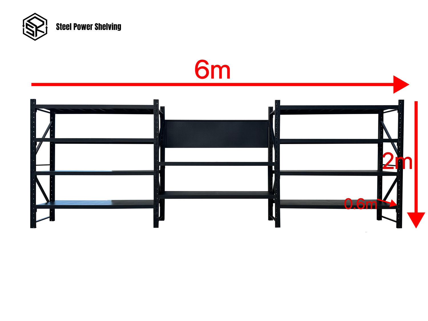 Workstation with pegboard - workbench 2.0m(H) x 6.0m(L) x 0.6m (D) 3000kg