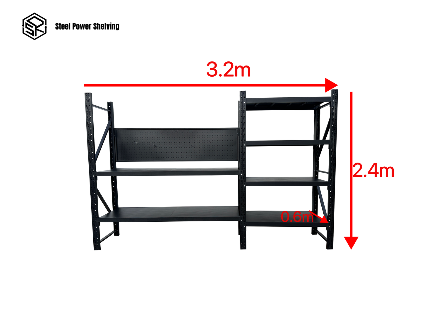 Workstation with pegboard - workbench 2.4m(H) x 3.2m(L) x 0.6m (D) 1800kg