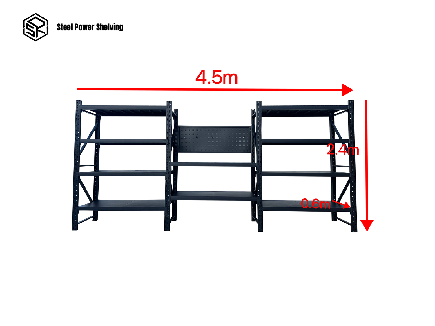 Workstation with pegboard - workbench 2.4m(H) x 4.5m(L) x 0.6m (D) 3000kg