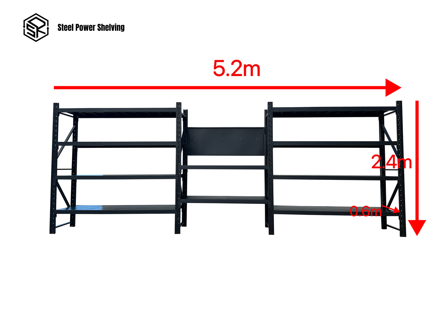 Workstation with pegboard - workbench 2.4m(H) x 5.2m(L) x 0.6m (D) 3000kg