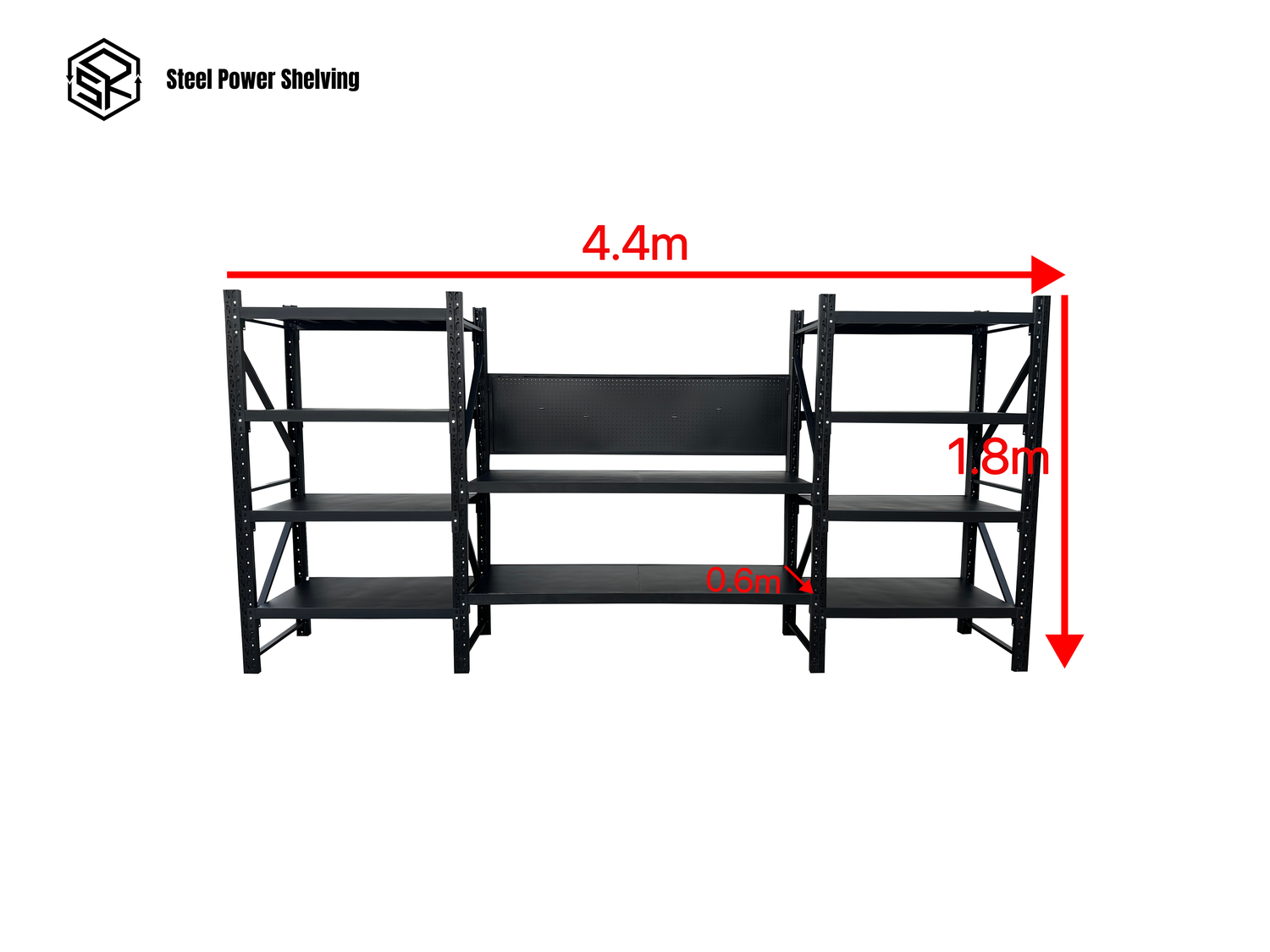 Workstation with pegboard - workbench 1.8m(H) x 4.4m(L) x 0.6m (D) 3000kg