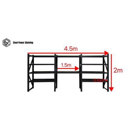 Shelf 2.0m(H)x4.5m(L)x0.6m(D)3000kg Shelving+Workbench
