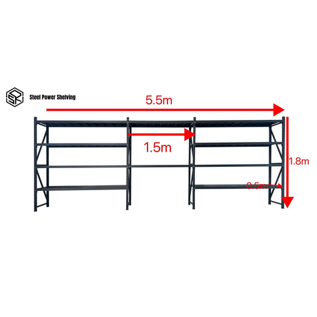 Shelf 1.8m(H)x5.5m(L)x0.5m(D)2000kg Shelving+Workbench