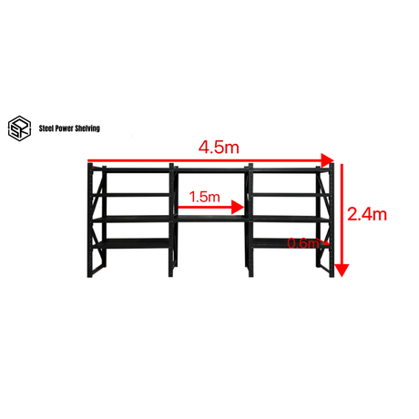 Shelf 2.4m(H)x4.5m(L)x0.6m(D)3000kg Shelving+Workbench