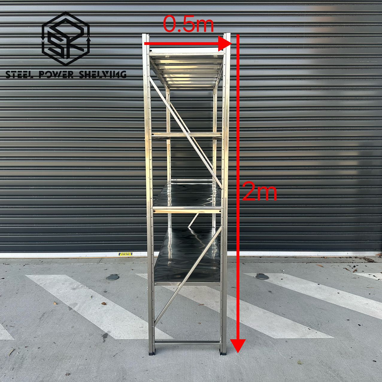 2.0m(H) x 1.5m(L) x 0.5m (D) 600kg Stainless Shelving