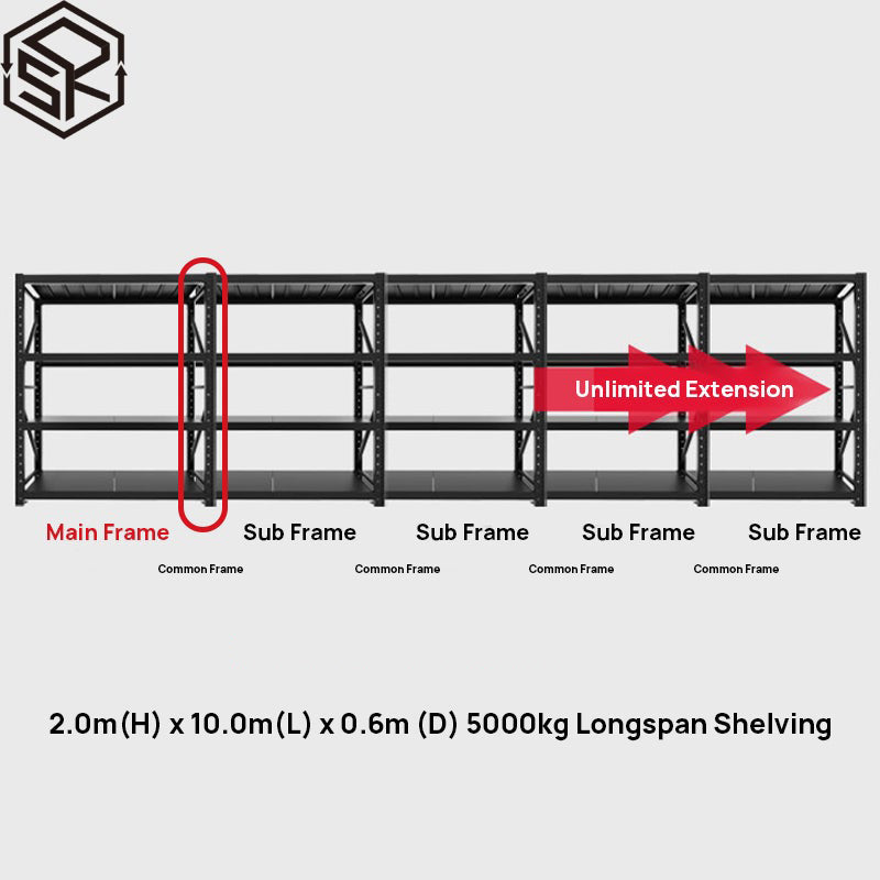 2.0m(H)x10.0m(L)x0.6m(D)5000kg Longspan Shelving