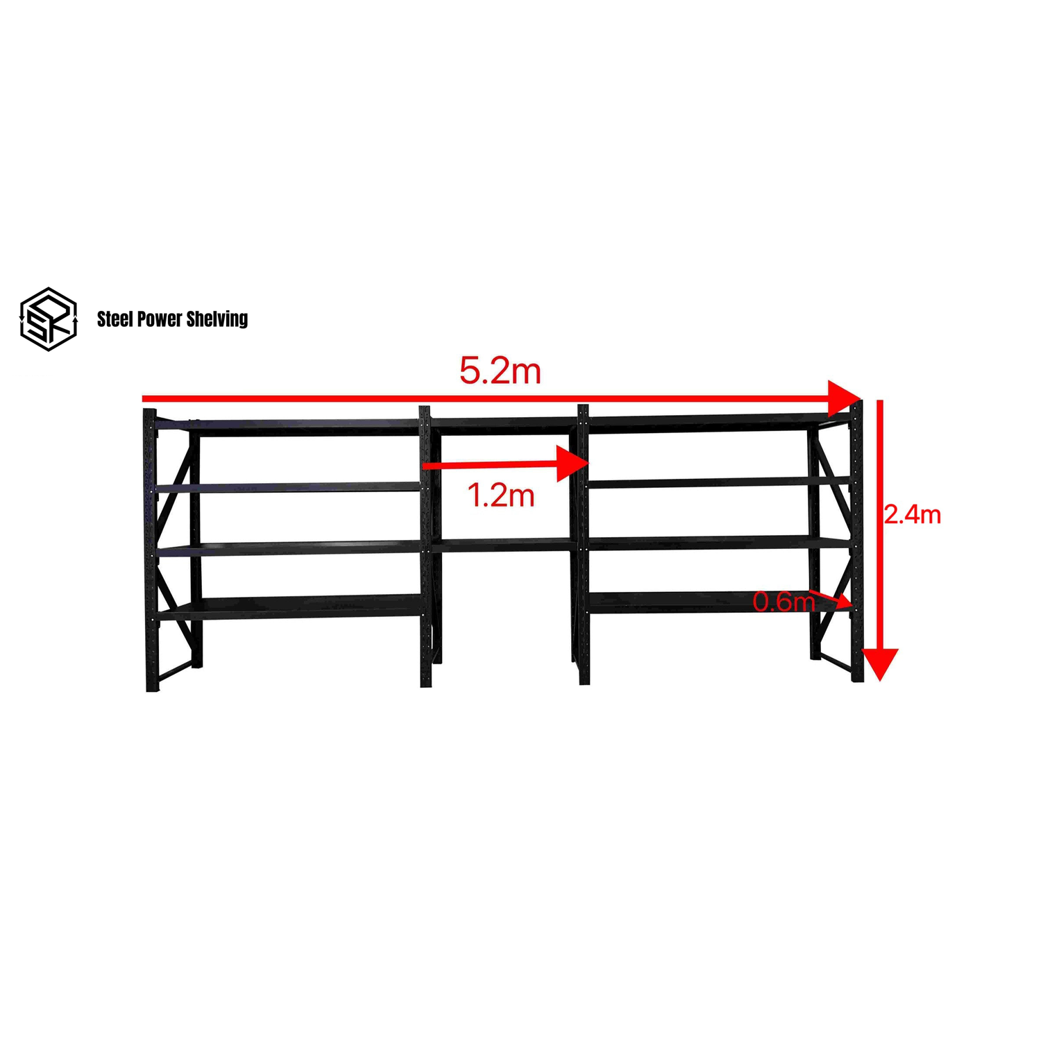 2.4m(H) x 5.2m(L) x 0.6m (D) 3000kg Shelving+Workbench